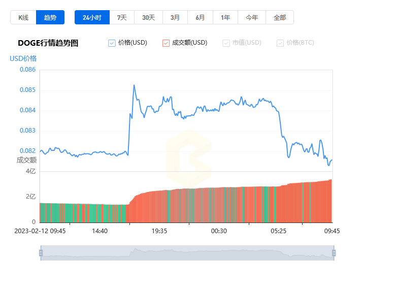 | 2023年2月11日 | 0.082250 | 0.080924 | 0.082563 | 0.080682 | 549.61M | 1.64% |
