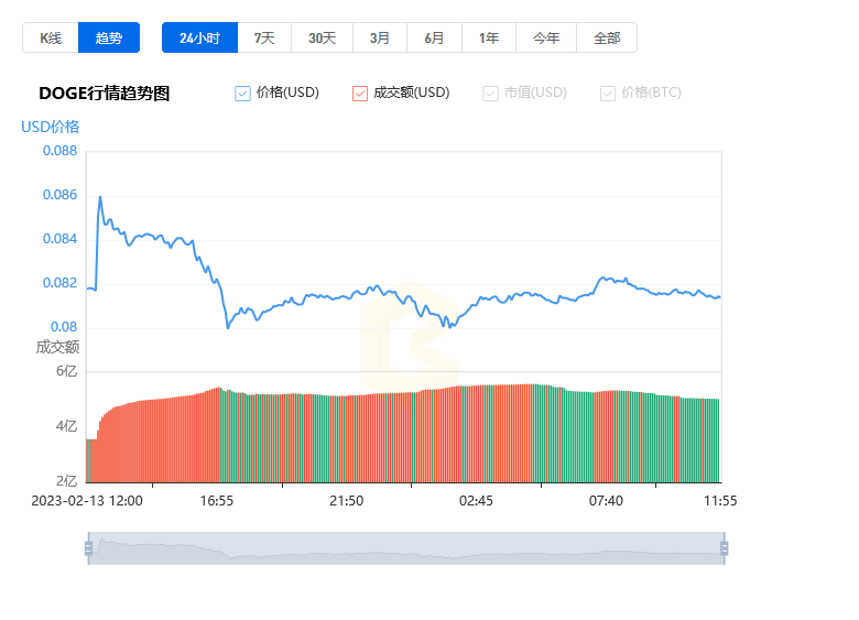 | 2023年2月13日 | 0.082032 | 0.082192 | 0.086367 | 0.079586 | 2.24B | -0.19% |