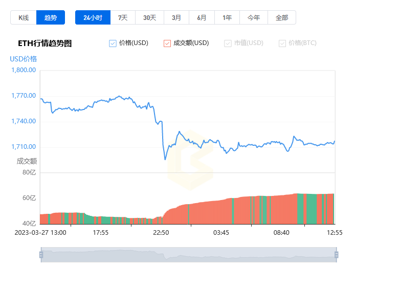 | 2023年3月27日 | 1,714.65 | 1,773.91 | 1,780.06 | 1,691.38 | 607.00K | -3.35% |